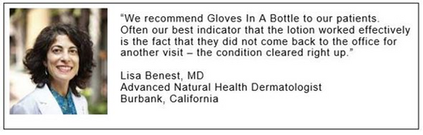 See the 15 second video “The key is to keep your own natural oils in place so they can do their own healing. That’s where Gloves In A Bottle is great. You put it on, it forms a natural invisible shield, and your own natural oils are left there to do their job. And it’s one of the few products people come back to me and say thank you, thank you for referring this product.” Dr. Peter Helton, FAAD Fellow of the American Academy of Dermatology Newport Beach, California Too many moisturizers have ingredients that moisturize the skin, but once they wear off after X amount of time, the other ingredients dry the skin. And as you know, dry skin flames your eczema. Well, Gloves In A Bottle Botanical Hand Shielding Lotion does not just sit on the surface of your skin. It bonds with the cells of the outer layer of your skin, turning it into an invisible shield so that both your body’s oil and moisture can’t escape. It’s kind of like wearing gloves to protect your hands. But this helps protect your face. It also helps keep out irritants that can flare up your eczema. You are going to want to try this as a face cream for dermatitis to see if it also works for you. See here for more