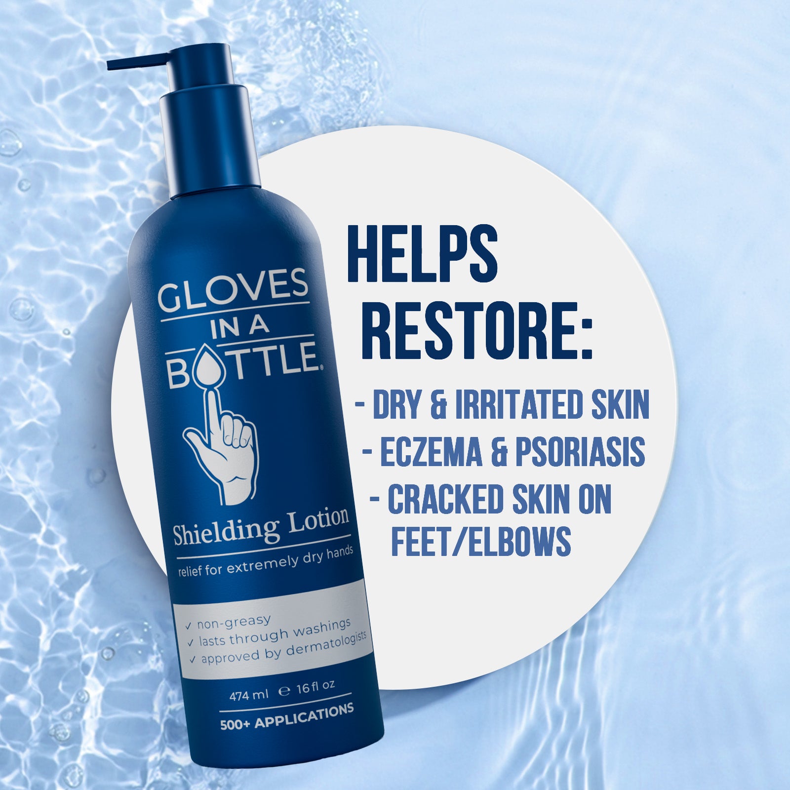 Conventional lotions merely add artificial moisture that washes away with each cleanse or contact. In contrast, Gloves In A Bottle offers a unique solution. One application of this shielding lotion creates a breathable, invisible barrier that acts like a protective shield. It helps to repair severely dry skin by repelling irritants such as chemicals, toxins, water, and sunlight, while locking in natural moisture. This protective layer, combined with regular use, allows your skin the time it needs to heal, resulting in a healthier appearance.