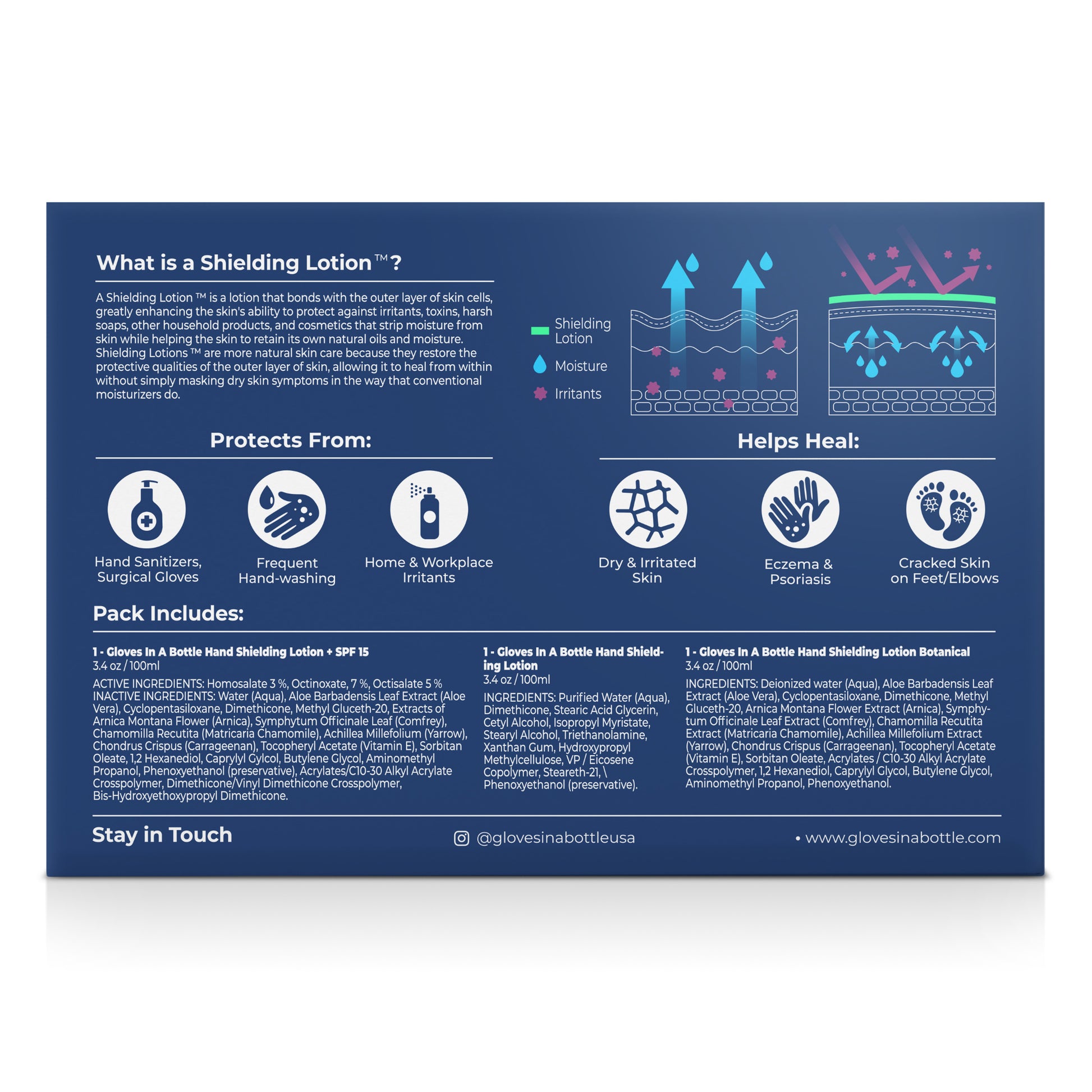 Gloves In A Bottle – Protects & Restores Dry Cracked Skin (3-Pack 3.4oz Tube Gift Set, Variety)