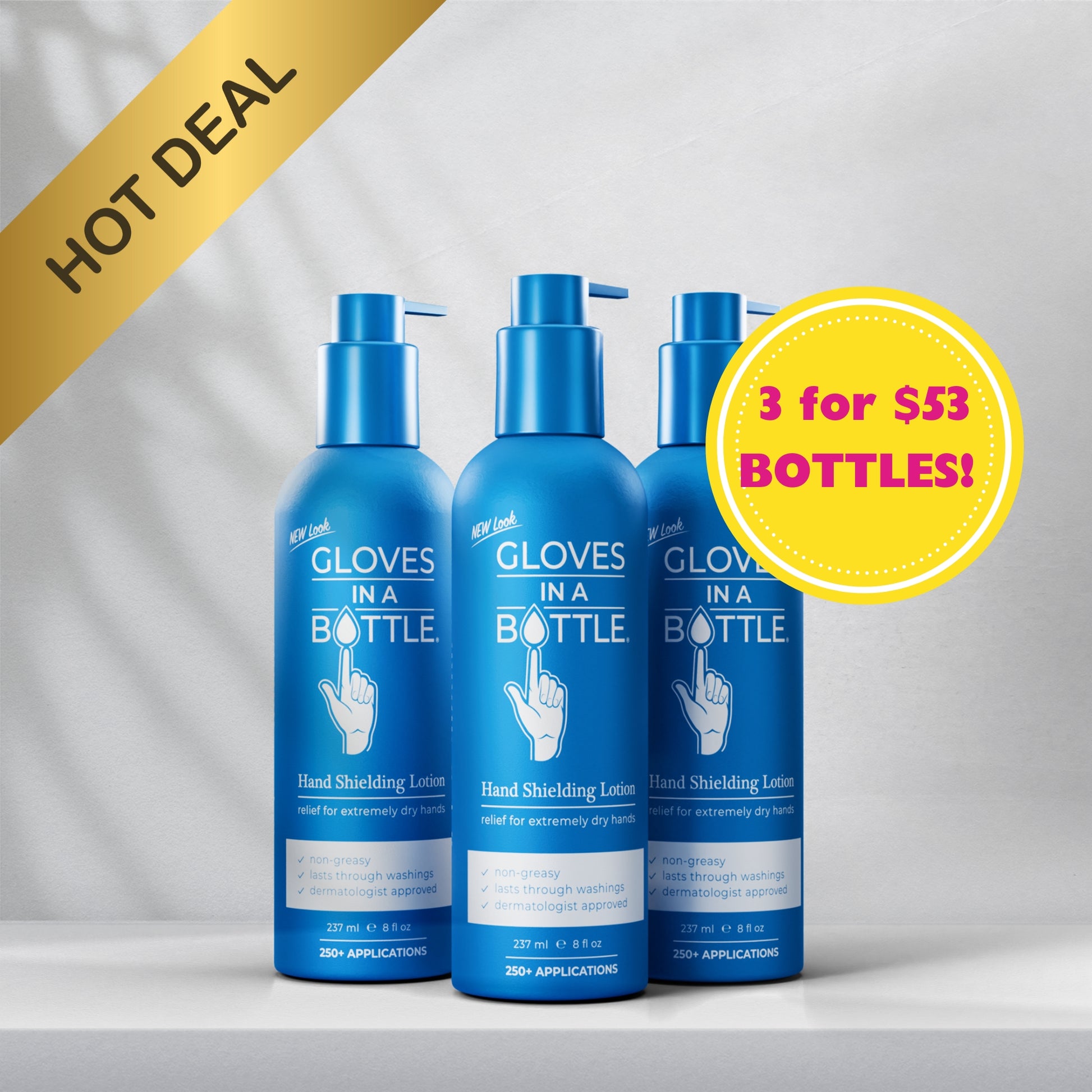 Gloves In A Bottle Shielding Lotion 3 pack 8 Oz Bottle with a New Pump