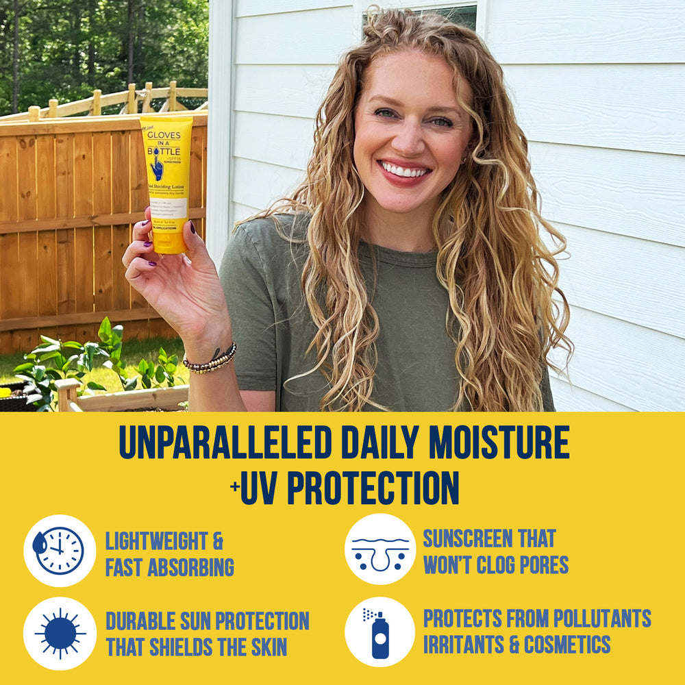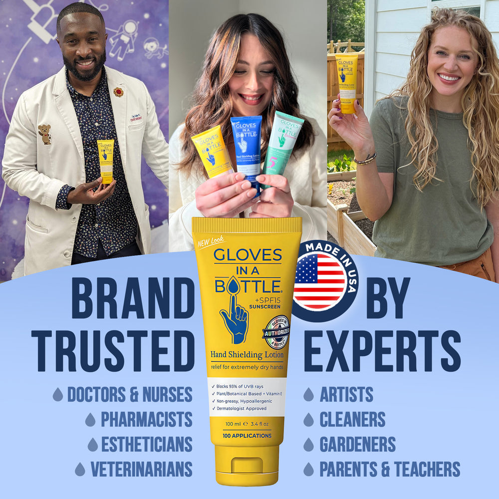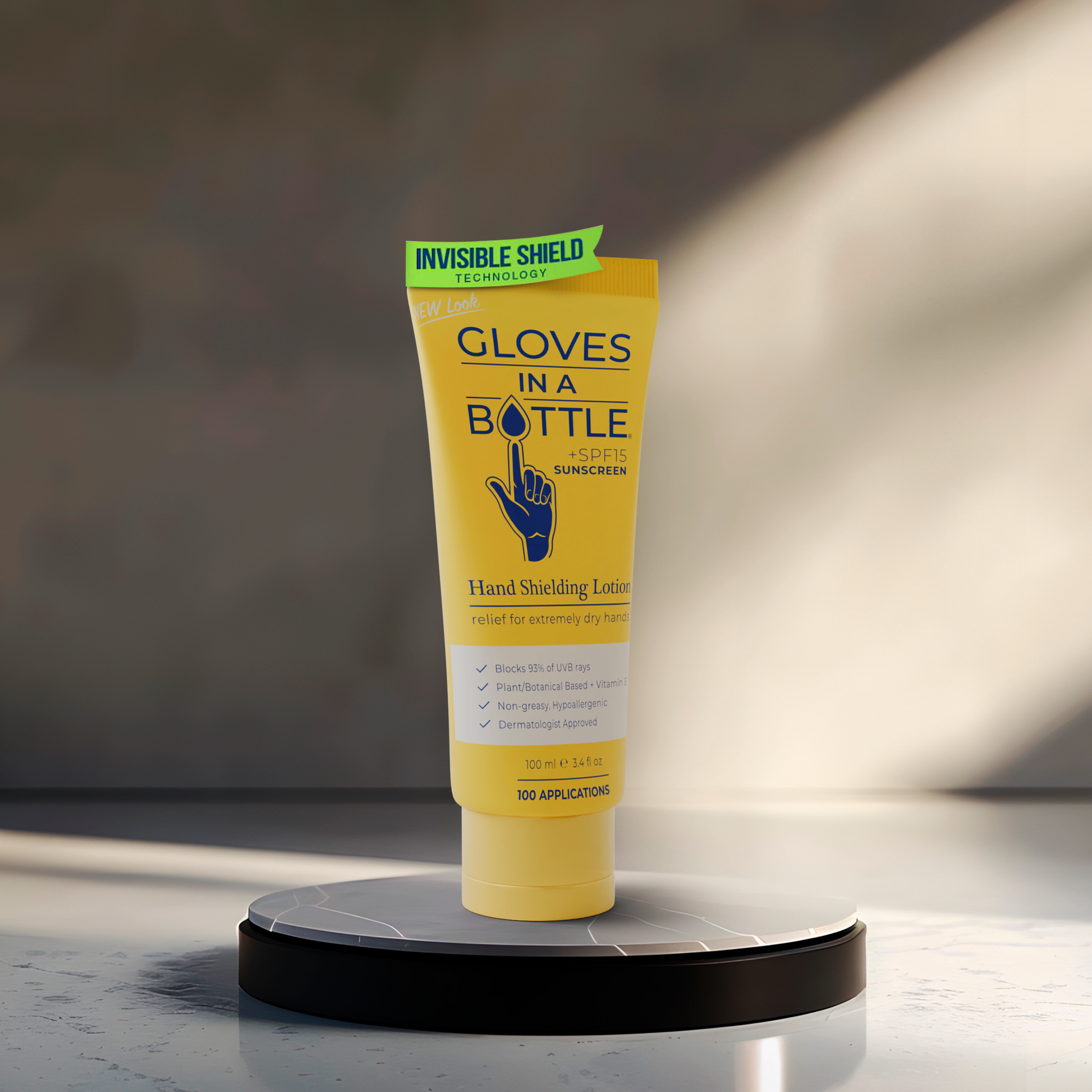 Gloves In A Bottle introduced SPF 15 in their hand shielding lotion to provide daily protection against both harmful UV rays and environmental irritants. This combination ensures your skin stays hydrated, shielded, and protected from sun damage, which can accelerate aging and dryness.